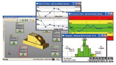| GEOPAK (功能強大的通用測量程序) MCOSMOS 軟件系統的核心是幾何形狀要素測量? 分析用軟件。其主要功能包括更容易觀察測量程序和結果如實時圖形顯示的測量結果和功能,從結果圖形直接調用元素。 | MeasurLink STATMeasure Plus (統計處理工序管理程序) 根據測量結果進行各種各樣的統計演算處理。此外,通過實時顯示管理圖,能早期發現將有可能發生的不良現象(刃具的摩耗和破損等)。據此,可以實施有效的對策(變更切入量和加工條件等)。最后,本程序作為終端處理器,通過與上一級網絡環境連接可以構建系統集中管理系統。 |